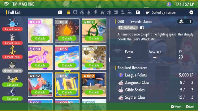How to craft Swords Dance (TM 088), and the ingredients required