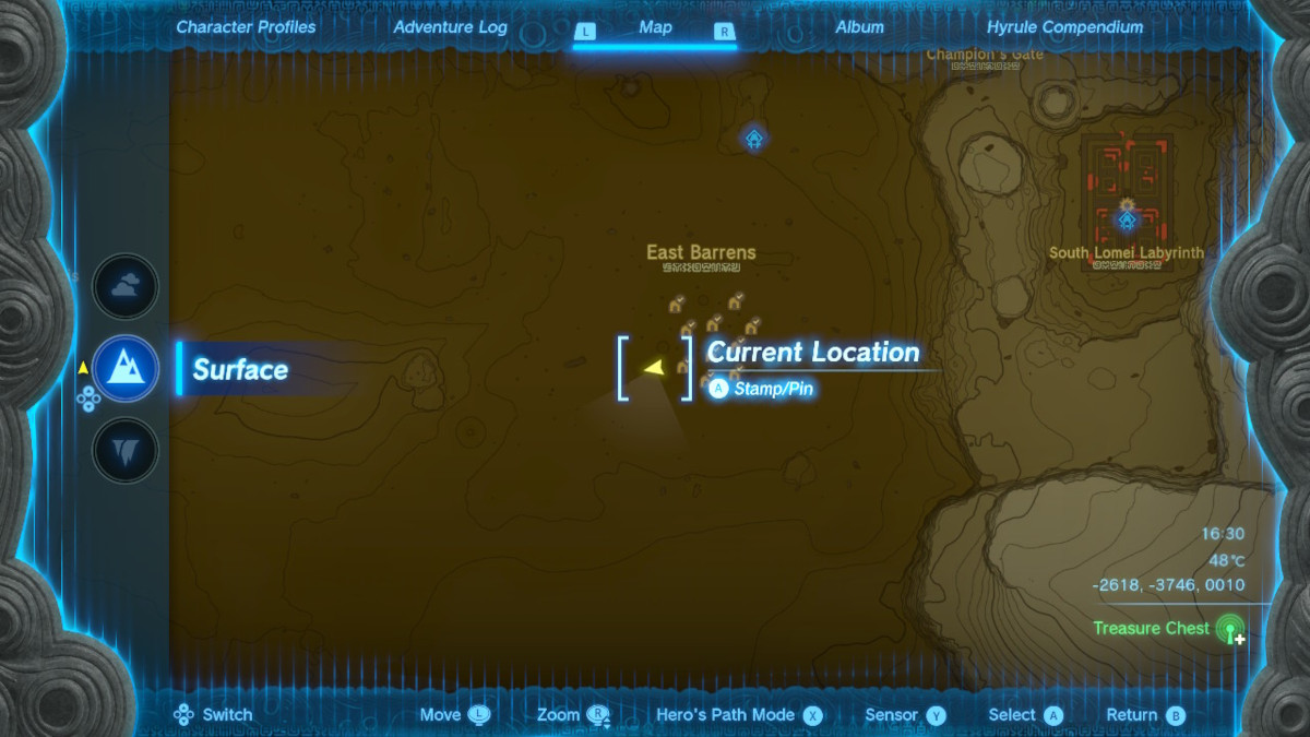 The Gerudo Shield can also be obtained from a treasure chest in the 12 Ancient Altar Ruins located in the Gerudo Desert. The coordinates are: -2618, -3746, 0010. To get to the ruins, jump in one of the twelve pools of quicksand. There is also a Shock Like which potentially holds another Gerudo weapon. While you’re underground, don’t forget to grab a Bubbul Gem from the Bubbul Frog.