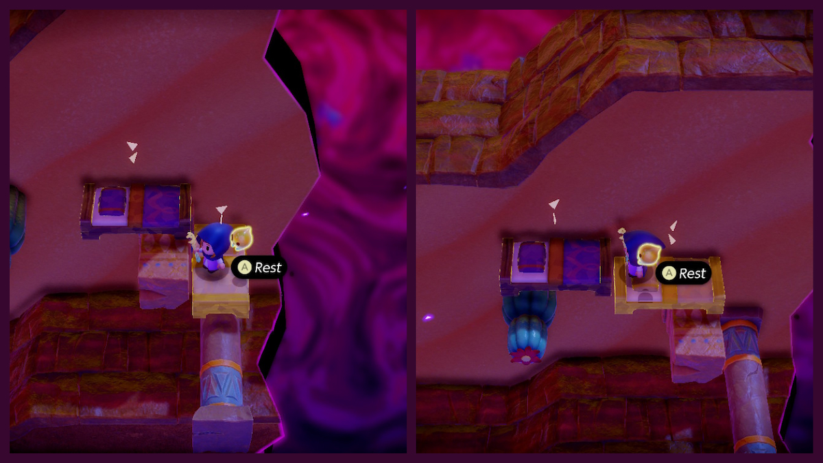 Place one Trampoline and two more to get to the final friend (or use any stair creation you desire). You’ll then complete the last task of the Zelda Echoes of Wisdom A Rift in the Gerudo Desert quest.