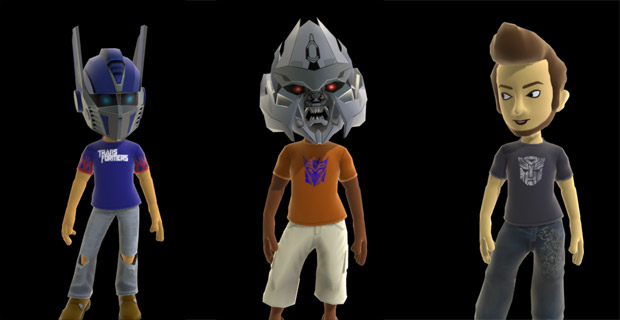 The Megatron, Optimus Prime, and BumbleBee (why?) helmets are 240 Microsoft Points each, while the male Transformers logo shirt, three Decepticons shirts, and three Autobots shirts are 80 MS Points a pop.