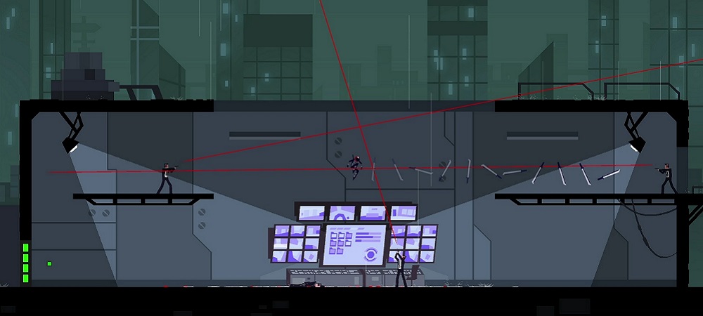 However, when running across the increasing number of guards patrolling the secured area, that’s when the turn-based action took a front seat. As soon as an enemy sees you, Ronin immediately switches formats. As a laser sight trains on you, you’re given a ton of options and an endless amount of time to determine the best approach to the situation. An early encounter had me jumping to the ceiling of a room to dodge a single shot. On the next turn, the guard’s focus followed me, so it required jumping back down the ground so that he shot high. Repeat until close enough to dispatch him with a melee kill.